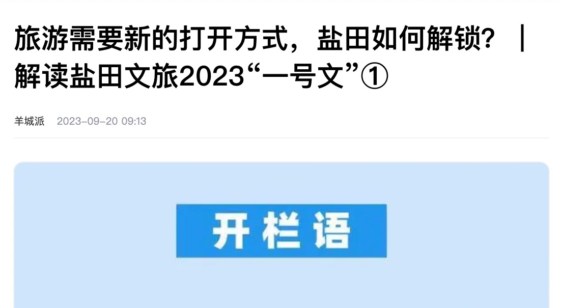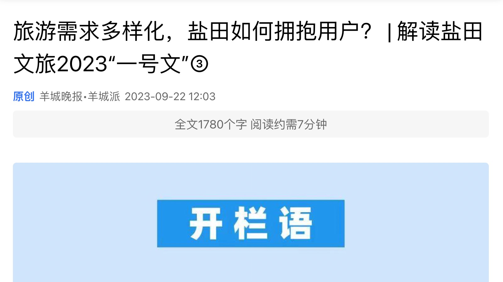 我院石培华教授解读盐田文旅2023“一号文”系列文章在羊城晚报客户端羊城派发表