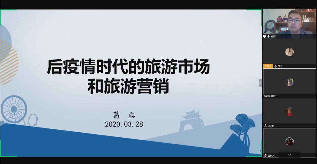 查看详情(通讯员:田哲人)2020年3月29日,yl23455永利官网举办线上MTA紫金大讲堂,中国旅游协会旅游营销分会副会长、中青旅联科公关顾问有限公司执行总经理、清华大学国家形象传播研究中心特约研究员葛磊为大家带来后疫情时代的旅游市场和旅游营销主题讲座。讲座由副院长陈晔教授主持,在学研究生和部分教师参加。讲座伊始,葛磊分析了新冠疫情对我国旅游业的影响,列举了“黑天鹅事件”对我国旅游业影响的数据,认为疫情的全球蔓延、...