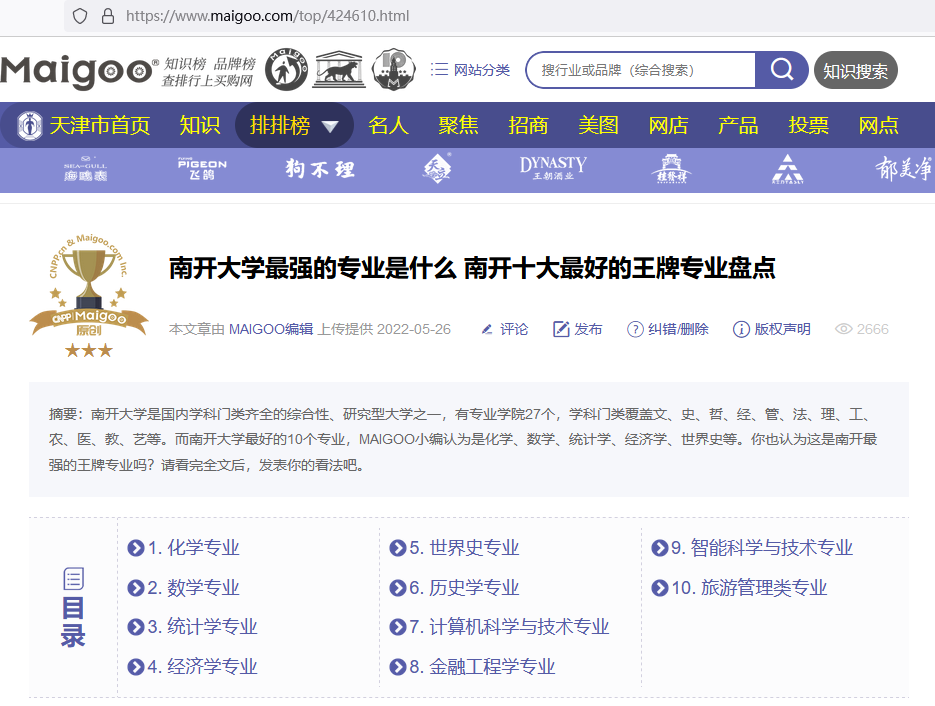 学科品牌是相关利益主体对于某学科产生的主观印象,并使得他们对该学科产生选择偏好。品牌不仅是吸引外部关注的利器,也是内部管理的力量。近日,专注于品牌分析的Maigoo网公布的南开大学十大最好的王牌专业盘点,我院旅游管理类专业位列其中;表明我院旅游管理学科建设在品牌影响方面取得新进展。南开大学是我国最早开办旅游本科专业的教育部直属重点高校,是第一批旅游管理科学硕士、专业硕士、旅游管理博士学位授予权单位和...