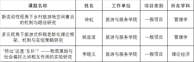查看详情近日,2023年国家社会科学基金年度项目立项名单公示,我院教师共计获批3项一般课题。分别是:徐虹教授申报课题《新流动性视角下乡村旅游地空间善治的机制与路径研究》,姚延波教授申报课题《多元视角下旅游式积极老龄化理论框架、机制与实现策略研究》以及李晓义副教授申报课题《“挤出”还是“互补”?——物质激励与社会偏好之间相互作用的实验研究》。以上研究以党的二十大报告为指导,积极落实“全面推进乡村振兴”国家战...