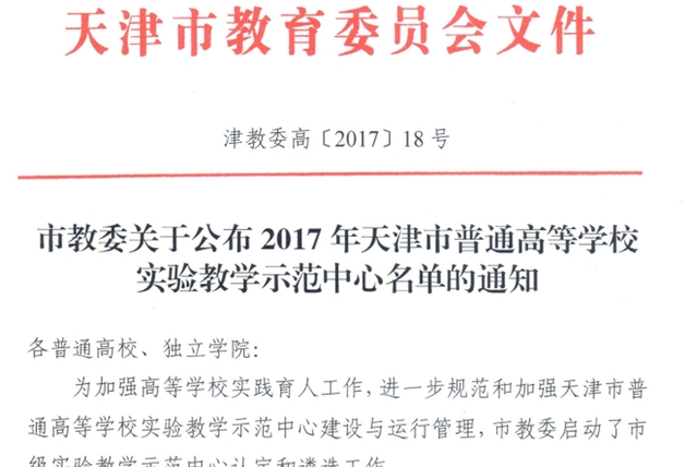 2017年9月6日,市教委公布了2017年天津市普通高等学校实验教学示范中心名单,我院旅游实验教学中心被列入天津市普通高等学校实验教学示范中心批准名单。按照《市教委关于开展2017年天津市普通高等学校实验教学示范中心建设单位验收工作的通知》要求,全市20所高校105个符合条件的市级实验教学示范中心建设单位申请参加验收。经学校申请、市教委审查、专家组网络评审和会议评审,网上公示无异议后,市教委批准了66个实验教学中心...