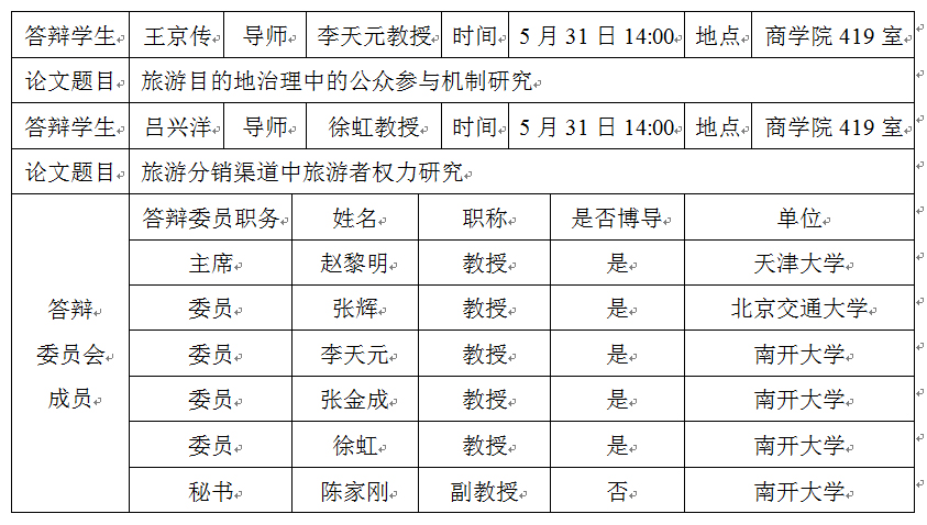 查看详情根据《南开大学关于2013年夏季毕业研究生答辩及评审工作的通知》的规定,现将我院博士生王京传、吕兴洋学位论文答辩会公告如下: 欢迎相关教师和研究生旁听! yl23455永利官网 2013年5月27