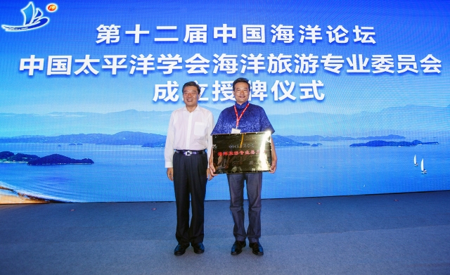 上午,在第十二届中国海洋论坛开幕式上隆重举行了中国太平洋学会海洋旅游专业委员会成立授牌仪式,中国太平洋学会张宏声会长向中国太平洋学会海洋旅游专业委员会白长虹会长进行了授牌。随后,中国太平洋学会海洋旅游专业委员会会长、yl23455永利官网院长白长虹教授作了题为“海洋旅游发展的全球视野与中国高度”的主旨演讲,现代旅游业发展协同创新中心主任、yl23455永利官网石培华教授也作了“全域旅游背景下海洋旅游发展趋势及战略重点”的主旨演讲。