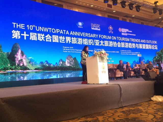 10月20-22日,我院副院长徐虹教授受邀参加了在桂林召开的第十届联合国世界旅游组织/亚太旅游协会旅游趋势与展望国际论坛。本届论坛由联合国世界旅游组织、亚太旅游协会主办,桂林市人民政府承办,香港理工大学协办。来自全球90多个国家、地区、国际组织及全国20多个省市的旅游官员、专家学者和旅游业界的嘉宾代表出席论坛。