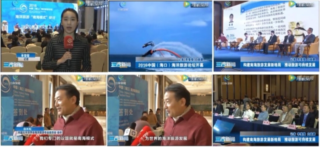 来自政府部门、行业协会、科研院所、知名企业的12名发言嘉宾结合南海实际情况,就“丝路”海洋旅游与南海战略重点;南海海洋旅游发展模式与路径思考;南海海洋旅游产品与业态创新;西沙蓝洞旅游文化新价值;南海海岛旅游管理经营策略;国家海洋公园发展模式探讨等议题进行交流与发言。本次论坛相关议程及议题的设计聚焦了海洋旅游南海模式和可持续发展两大最为前沿和热点的话题,受到了中央电视台的关注和海南卫视、旅游卫视、三沙卫视的全程采访和报道。