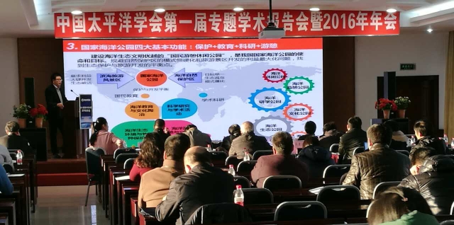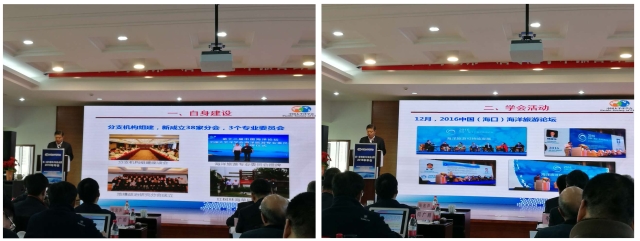 在上午的会议中,首先由中国太平洋学会会长、国家海洋局原副局长张宏声作了2016年学会工作报告,报告中尤其列举了我院中国海洋旅游专业委员会所取得的一系列成果,充分肯定了为中国太平洋学会2016年工作所起到的显著贡献意义。接着关道明、李培英等五位来自不同单位的研究员做了各自的相关研究报告,探讨了关于渤海生态环境状况与管理对策研究、海岛保护管理与海岛旅游等方面的问题。