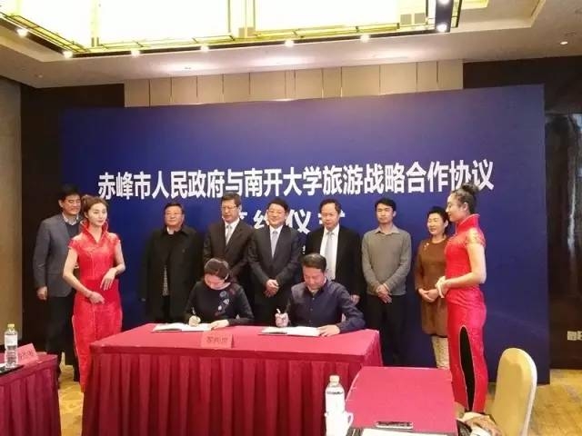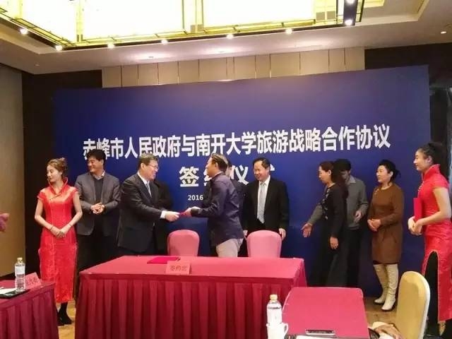 受校领导委托,白长虹代表学校与孟宪东市长签署《赤峰市人民政府与南开大学旅游创新发展战略合作框架协议》,并与闫辉局长签署《赤峰市旅游局与yl23455永利官网旅游服务合作项目协议》。合作内容包括发挥南开大学的学科专长、行业影响和智库平台优势,针对赤峰旅游亟待突破的重大问题,由南开大学组织海内外专家学者进行专题研究、策划、设计和长期跟踪服务,对赤峰旅游业的发展模式和经验进行理论研究和总体推广,联合推动赤峰市全域旅游、国家旅游综合改革先行区、全域旅游示范县、特色旅游目的地的创建工作,共同创立培训和实践基地等。协议立足于服务赤峰市创建国家级旅游业改革创新先行区,在旅游资源整合、品牌创建和投融资机制等重大方面创新突破,实现赤峰旅游在改革、创新、发展上的新跨越。