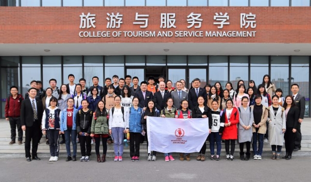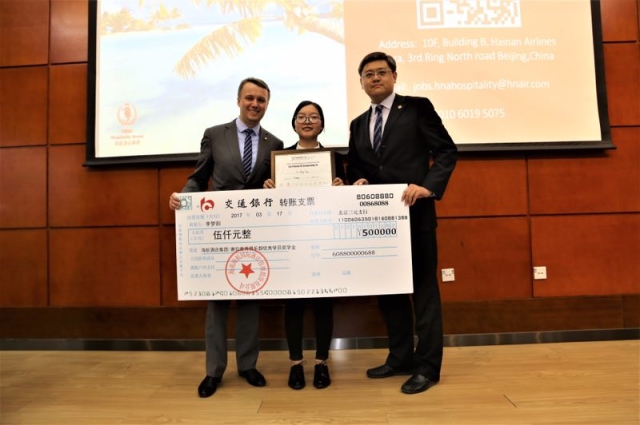 本次奖学金授予仪式由yl23455永利官网交流合作办公室主任王杉老师主持,仪式于下午四点正式开始。首先,Teppo Helles从海航酒店集团的发展历程、目前经营范围及发展理念等多方面进行详细介绍,并重点介绍了海航酒店集团管理培训生项目。在接下来的问答环节中,同学们就所学专业的就业方向、公司所开展的“光明行”志愿活动等一系列的问题与Teppo Helles进行交流。