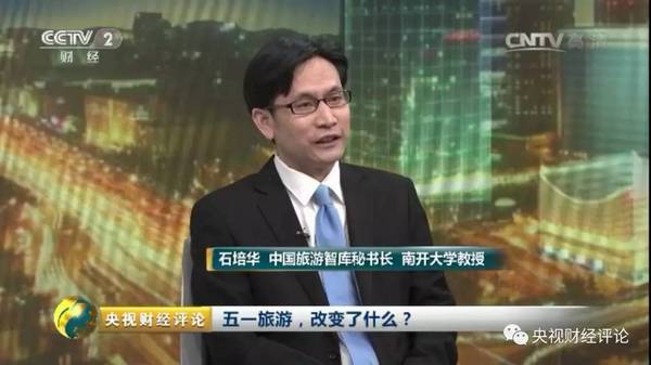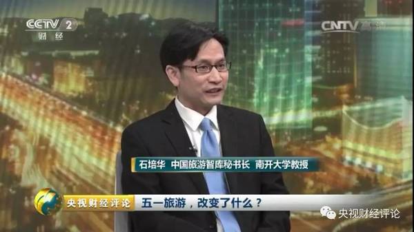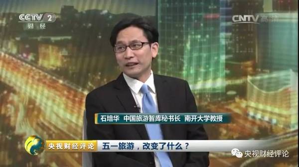 5月2日,石培华教授做客中央电视台《央视财经评论》演播室,专访座谈五一旅游新变化。一起做专题访谈节目的有中国旅游智库秘书长、南开大学教授石培华,中旅总社和国旅总社董事长于宁宁和央视财经评论员赵悦。