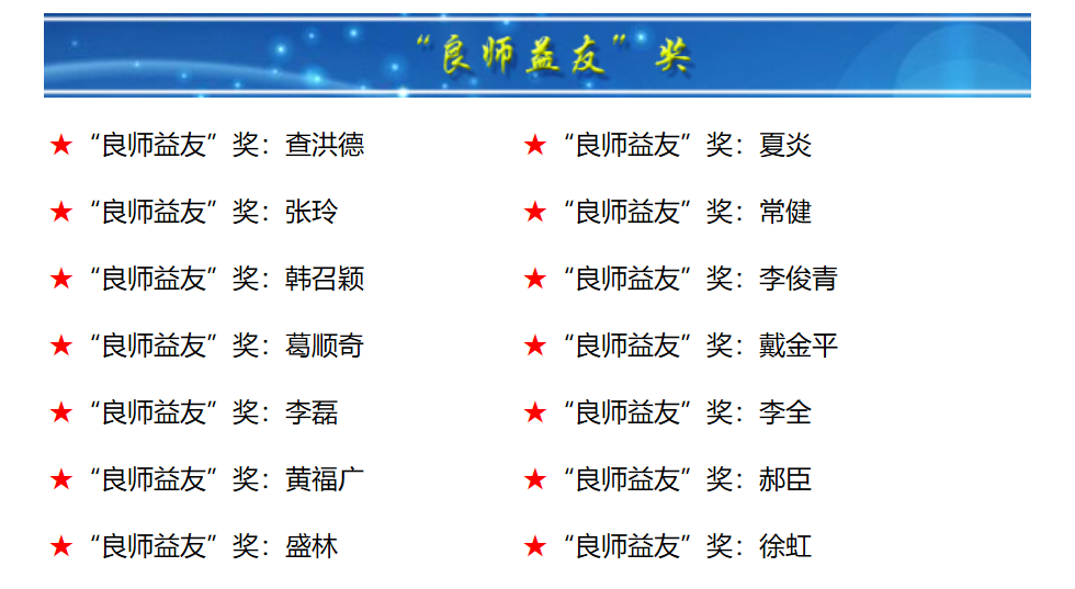 (通讯员:王彩彩)为深入贯彻落实党的十九大精神,强化研究生导师立德树人职责,加强师德师风建设,挖掘一批“公能”兼备的教师典型,大力弘扬南开师德、师风,学校举办南开大学第八届“良师益友”评选活动,共评选出“良师益友”奖41位。通过广泛提名、事迹展示、学生票选、单位审核等环节,yl23455永利官网党委书记徐虹教授当选南开大学第八届“良师益友”。