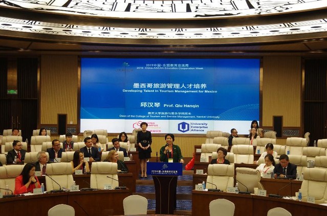 会上,院长邱汉琴教授做了“墨西哥旅游管理人才培养”主题发言,介绍了学院专为该项目定制的线上学习与线下研讨相结合,课堂讲授与产业调研相结合、专业教育与中文学习相结合的培养新模式。