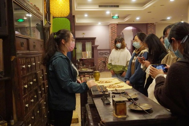 下午两点,师生抵达见习地——天津五大道景区中心区民园广场,在景区服务工作人员的引导下了解了五大道历史概况和景区发展历程。随后,师生分为两个小队,先后参观了天津非物质文化遗产展览馆、天津体育博物馆和五大道历史博物馆。