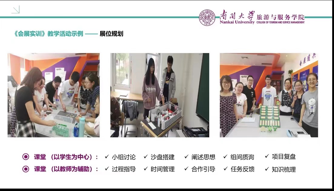 接下来,成红波副教授、黄青老师和陈宇佳老师就具体的课程实践情况展开探讨。成红波老师以《会展实训》课程从无到有的开发经历为线索,分享实训课程的教学模式和旅院会展实验室在教学实践中的应用创新与难点。黄青老师介绍了酒店管理虚拟仿真实验教学系统的使用情况。该系统以大数据为技术基础,依托市场营销、资产管理等行业知识背景,为学生们提供一个可视化的运作平台。陈宇佳老师以“乐高认真玩”为切入点,介绍目前被一些国际企业和学术界开始使用的乐高工作法的核心流程和理念,提出在未来教学科研上如何结合乐高活动设计开发和培养新型实践人才的思考。