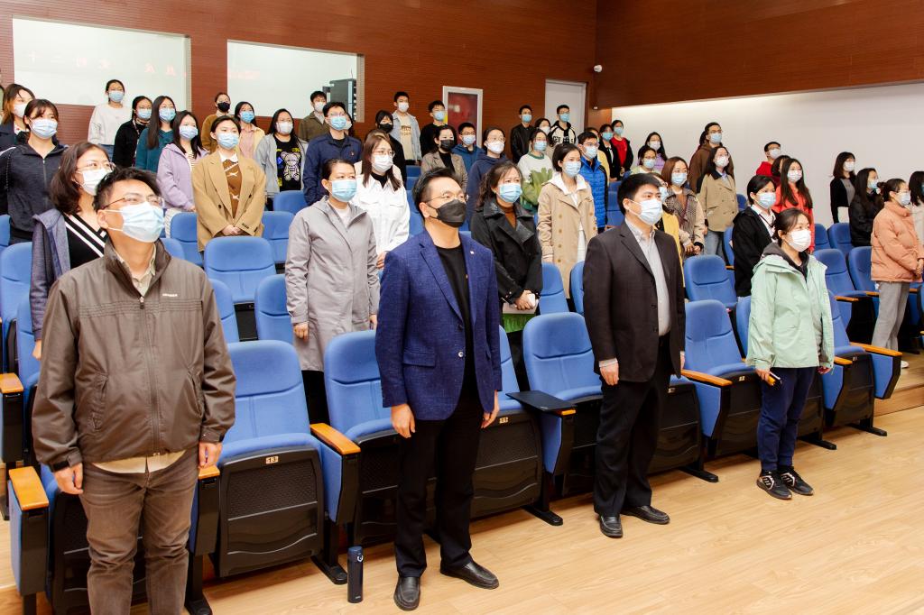 大会伊始,在庄严的氛围中师生全体起立,高声齐唱国歌并为已故老一辈无产阶级革命家和革命先烈默哀。学院师生一起认真聆听了报告,在场党员表示深受鼓舞,难掩兴奋与激动。