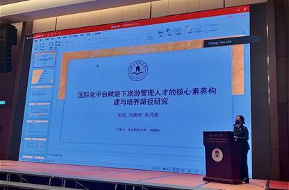 本次会议共设八个分论坛,并在21日下午进行。其中,分论坛一 “旅游教育高质量发展与建设”由我院召集、徐虹教授主持。经过专家评审,分论坛一共有五篇论文受邀在会上进行汇报,汇报人就“旅游企业产教融合”、“国家化平台赋能旅游管理人才培养”、“旅游数字化人才培养”、“研学旅行课程开发”、“旅游职业教育高质量发展”等关键话题与线上线下参会者进行了分享和讨论,徐虹教授对五篇论文和汇报内容进行了深度点评,并针对当下旅游教育的特有问题提出了实践建议。