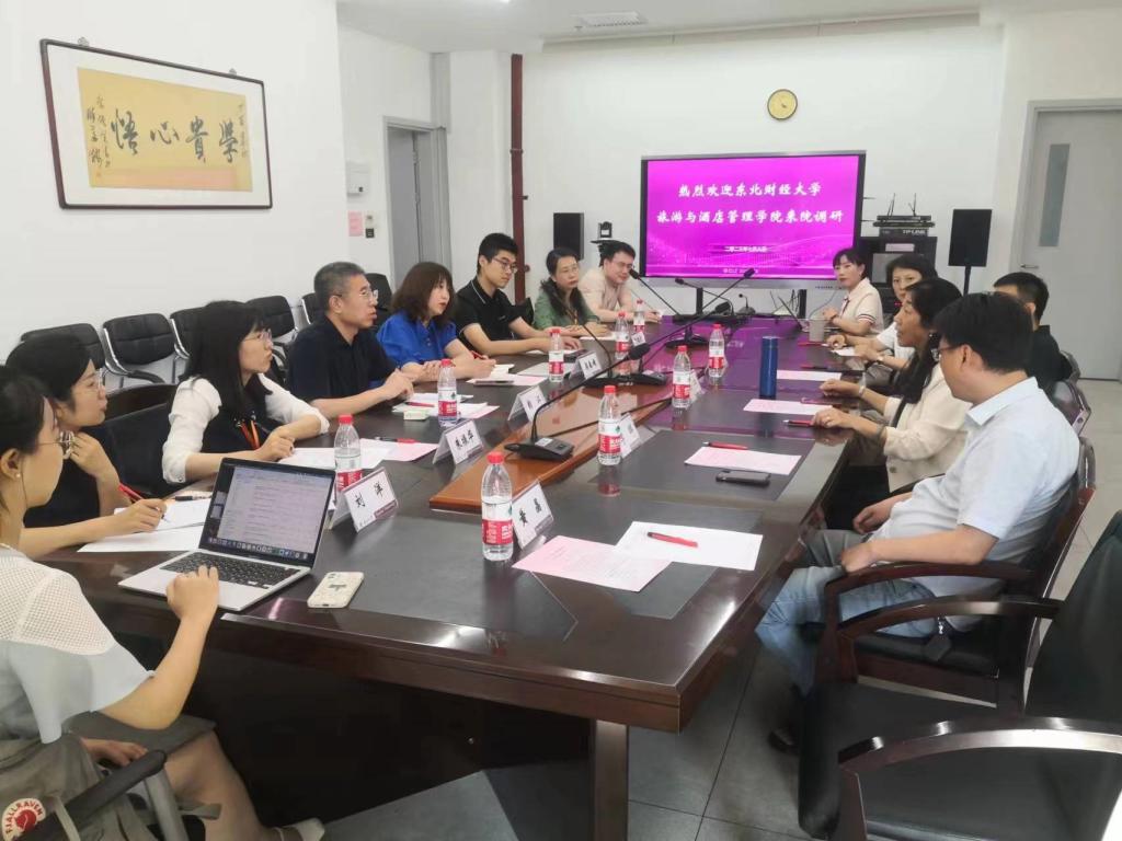 近日,东北财经大学旅游与酒店管理学院院长韵江教授、副院长梁春媚副教授等一行五人,江西师范大学历史文化与yl23455永利官网旅游管理系万剑敏主任等一行四人到访yl23455永利官网,院长徐虹教授、副院长李辉教授、会展与经济管理系系主任周杰副教授及相关部门负责人参与座谈。