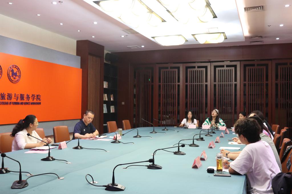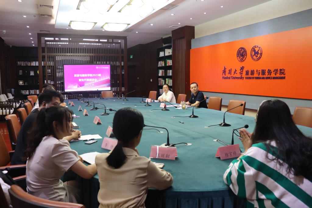 座谈会由霍菲主持,她首先介绍了参加此次座谈会的学院领导及新生代表,并向所有2023级的新生同学们表达了祝贺和欢迎。随后,本硕博新生代表依次发言,同学们围绕对南开的“第一印象”、对工商管理大类和旅游管理学科的认知、对自身新角色的体会以及对未来的规划和畅想等内容纷纷表达了自己的观点。