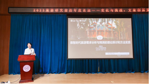 短暂休息后,开启了上午后半程的演讲。来自复旦大学的郭英之教授以《新时代高质量发展背景下历史文化旅游品牌产品认知对幸福感影响的路径机理研究:理论模型建构、多元案例检验、精准定制营销》为题,从个人的三项研究出发,讲解了如何拓展旅游体验的框架,基于文化认同、文化体验的感受,以及中国特色的历史文化品牌进行营销实践、创新实践,从而提供理论量化的科学依据。同时也强调了旅游体验的营销抓手是感官、思考、行动、情绪等体验,为我们对旅游业的发展方向、旅游消费心理等的了解提供了新思路。