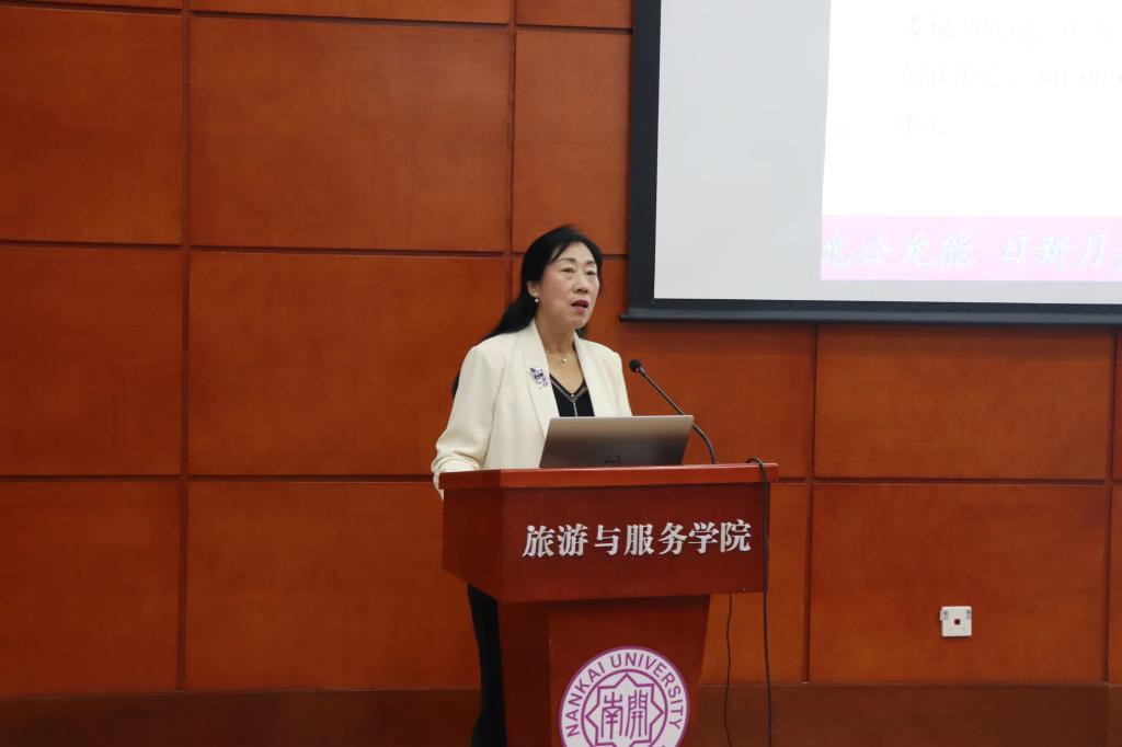 讲座伊始,徐虹教授从学院育人思想、学科教材建设、学科教学方式等方面为同学们介绍了南开大学旅游学科的办学历史及发展历程。接着,她结合《中国旅游教育蓝皮书》的内容分析了旅游行业的现状和趋势,并从“为什么学、学习什么、怎样学习、效果如何”四个方面就专业学习问题展开讲述。她通过“为学六艺”,向同学们强调了理想和目标的重要性,并希望同学们不仅在大学中学习知识而且学会做人做事。接着,徐虹以《论语》开篇三句话的解读,提出同学们在大学期间应该去训练自身思考能力、锻炼与人相处的能力并修炼正确的心态的建议,她还强调了核心素养作为适应终身发展和社会发展需要的必备品格和关键能力的重要性。