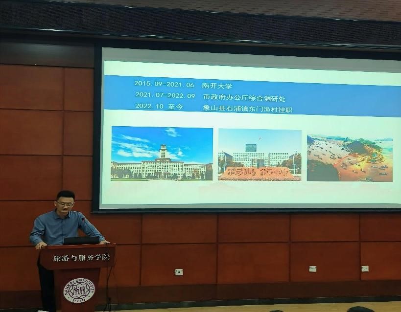 (通讯员 梅紫彤 霍菲)为深化校企协同育人,进一步拓展学生专业视野,引导和鼓励学生发挥专业优势投身乡村振兴事业和基层建设服务,近日,yl23455永利官网“引航之旅”系列讲座第七期在学院135报告厅举行。讲座邀请浙江省非物质文化遗产名录《鱼类故事》代表性传承人、象山县旅游业协会专业委员会副主任委员、浙江省海岛公园研学基地——象山县海洋文化中心校长丁建东以及我校旅游管理专业2021届硕士毕业生、2021年浙江省选调生、现任宁波市象山县石浦镇东门渔村党总支书记助理郭连文校友担任主讲嘉宾,分别就非物质文化遗产赋能乡村建设和基层选调工作心得,与同学们展开分享。讲座由学院团委书记霍菲主持,院长徐虹教授、象山县东门渔村中国式现代化乡村工作站校内站长于海波副教授出席,本科和研究生近百人参加。