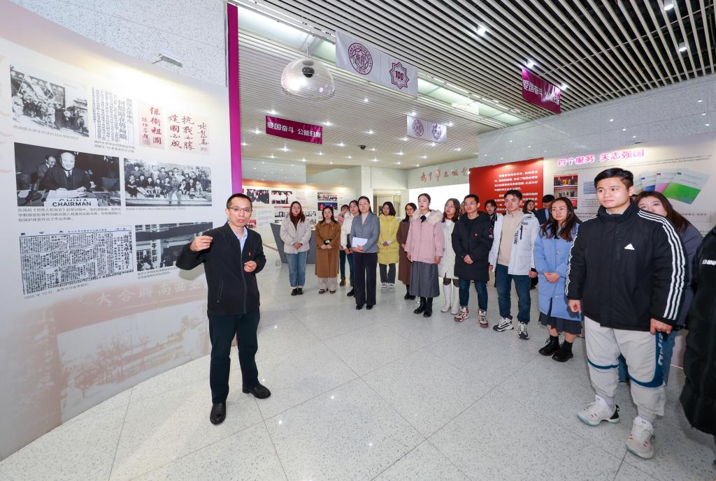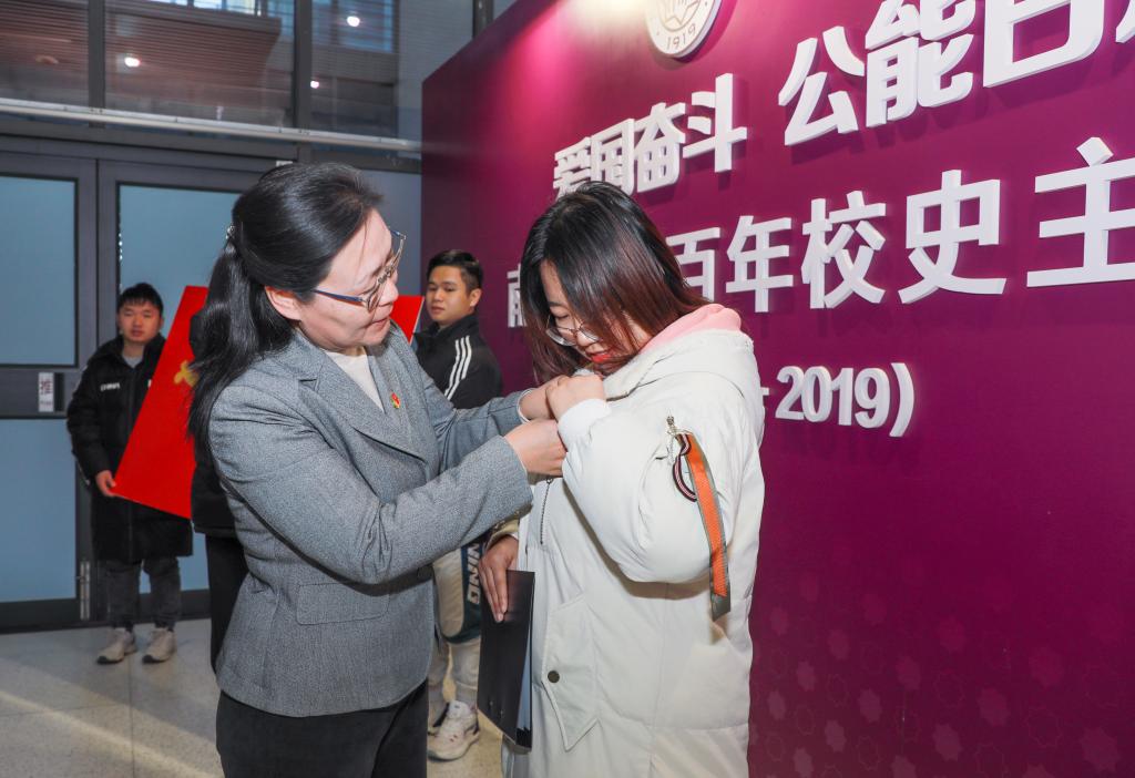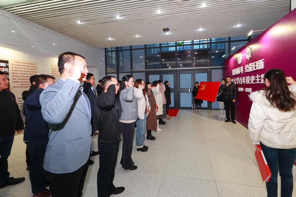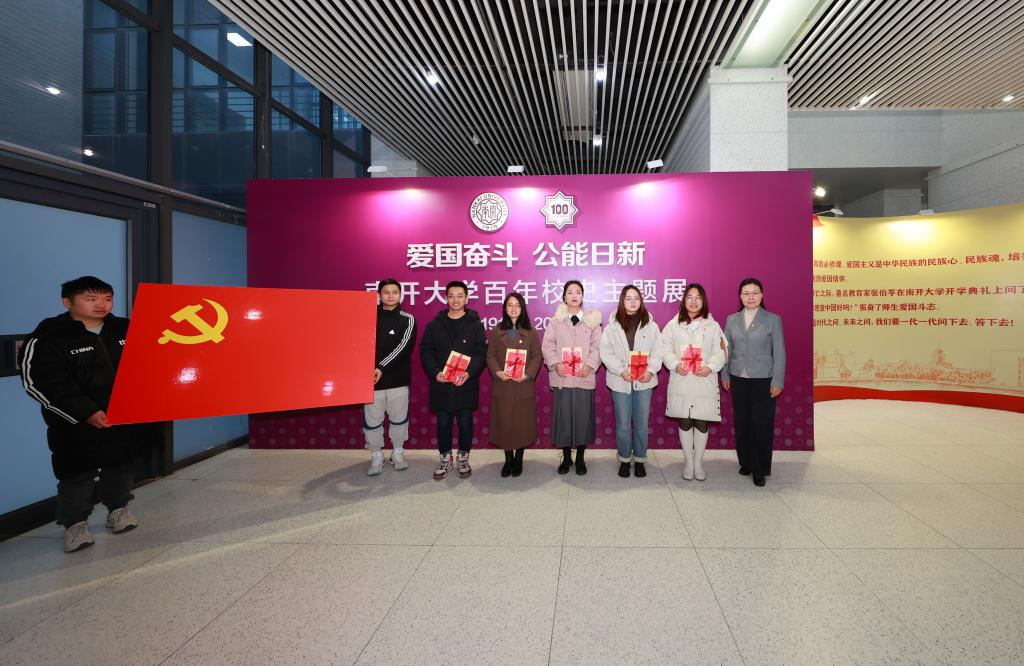 此次主题党日活动分为“重走视察路线,牢记殷殷嘱托”“重温入党誓词,坚守初心使命”及“共话五年发展,开启崭新征程”三个环节。在第一环节,师生党员在校纪检监察机构党支部书记、校纪委副书记易勇军的带领和讲解下,共同参观了位于八里台校区的“爱国奋斗 公能日新”南开大学百年校史主题展,重走习近平总书记视察南开路线,重温视察讲话场景,深入学习南开百年爱国奋斗历史。在参观过程中,赵美蓉与同学们亲切地交流,耐心地解答同学们的疑问,进一步加深了师生对习近平总书记视察南开大学的重要意义的理解。