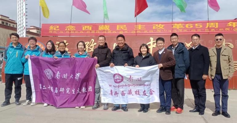 学院一行与西藏校友会代表共同赴达孜区中心小学看望了援藏的南开大学第25届研究生支教团的商学院高云思、金融学院刘忠濠、物理学院仲垚、外语学院王紫琪、数学院刘宇鑫等5位成员。小学副校长达瓦巴珠参加了座谈。同学们见到校友会代表和母校老师们非常激动开心,每位同学汇报了工作情况和支教感受,表示得到了全面锻炼和提高。万力会长鼓励同学们发扬南开精神,克服困难做好支教团工作。她表示母校和校友会非常关心同学们的工作和学习,并代表西藏校友会带来了慰问品。王巍书记分享了自己的支教经历和多次送支教团赴藏的工作体会,感谢同学们支教期间对达孜小学教学和管理方面的贡献,鼓励大家传承好南开支教团精神,勇于开拓创新,做好迎接西藏支教团十周年庆祝工作。达瓦巴珠校长非常认可支教团的优秀工作表现,并感谢南开大学长期以来对达孜区中心小学的帮助和支持。