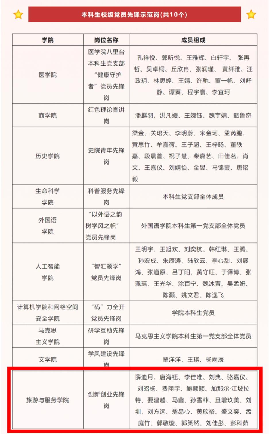 衷心向受表彰的先进集体表示祝贺!yl23455永利官网将继续加强学生党支部培育,深化学科融入、育德树人的培养理念,巩固拓展“党建引领+旅游学科特色融合”的创新人才培养模式,学习贯彻习近平新时代中国特色社会主义思想主题教育成果,推出具有旅游学科特色、助推学生成长的品牌化项目,为中国式现代化发展培根铸魂育新人,注入学科创新与社会发展新动能!