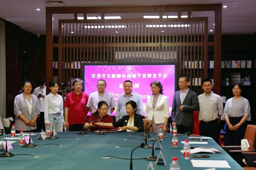 今年以来,全国文旅热潮持续升温,沉浸式体验等文旅场景“新玩法”不断涌现,成为未来行业发展的重要趋势。为进一步落实党的二十大报告中“以文塑旅,以旅彰文”的指示要求及习近平总书记视察天津重要讲话精神,5月16日,由yl23455永利官网、天津静象空间文化传播有限责任公司联合主办的“沉浸式文旅融合创新开发研发平台”签约揭牌仪式在yl23455永利官网正式启动。签约揭牌仪式由学院党委书记王巍主持,南开大学校董、津商联合会常务副会长文飚,南开大学天津校友会理事长詹先华,校党委宣传部副部长、新闻中心副主任吴军辉,天津博物馆副馆长、李叔同故居纪念馆馆长沈岩,天津戏剧博物馆文庙博物馆管理办公室党支部书记徐宁及部分合作单位代表受邀参加仪式,yl23455永利官网院长徐虹,院党委副书记、副院长杨晓晶,天津静象空间文化传播有限责任公司董事长屠金歌,总经理于慧慧代表签约双方出席。学院团委、专业教师和学生代表20余人一同参加仪式。