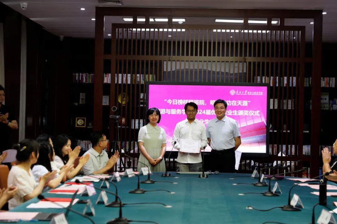 (通讯员 徐钰涵 霍菲)6月17日下午,“今日榜样耀旅院,明朝建功在天涯”yl23455永利官网2024届优秀毕业生颁奖仪式暨毕业生座谈会在学院134会议室举办。学院党委书记王巍,院长徐虹,党委副书记、副院长杨晓晶,副院长陈晔、李辉、杨德进等全体领导班子成员,全体毕业班班导师,毕业班辅导员以及20余名本硕博毕业生代表共同参会交流。会议由学院团委书记霍菲主持。