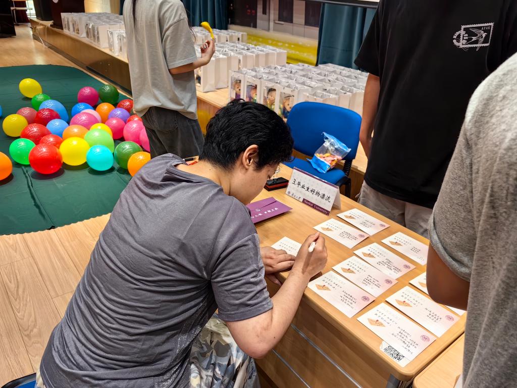 凭借在各个项目中获得的专属印章,毕业生们还在兑奖处领取了学院精心准备的毕业礼物,姓名定制款小熊、“奔赴山海”定制书签、印刻着《南开镜箴》的容止镜等,每一件都饱含着学校和学院对毕业生们的殷殷嘱托和深切祝福。活动现场滚动播放“情满旅院,南以离开”2024届毕业生祝福视频,带着学院领导和老师们的深深祝福和殷切期待,毕业生们即将启程,向光而行,奔赴远征。在欢声笑语中,毕业嘉年华活动圆满落幕。