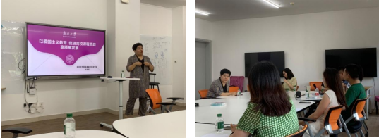 张志红副教授现任南开大学公共管理教育中心副主任,多次获得天津市和南开大学优秀教学成果奖,是国家级一流课程主讲教师、天津市课程思政教学名师,也是南开大学课程思政讲师团成员。此次已经是第二次来学院分享课程思政教学经验。张教授围绕着“以爱国主义为核心深入推进课程思政高质量建设”这一主题,结合自身教学实例以及旅游学科特色,生动阐释了以“小切口”讲好“大主题”、将课程思政元素与专业教学有机结合的实现路径,并就学院申报课程思政及一流课程建设成果给出了切实可行的建议。之后,张教授和学院老师们就教学和学生培养等话题进行了深入的交流。