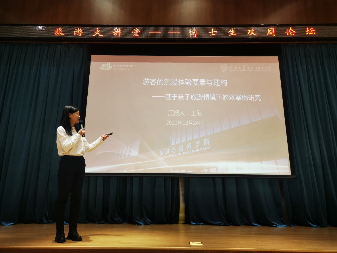 12月24日下午,yl23455永利官网“旅游大讲堂——博士生论坛”如期在学院111多功能厅举行。2020级旅游管理博士生王倞就“游客的沉浸体验要素与建构——基于亲子旅游情境下的双案例研究”主题进行了汇报交流。论坛由易柳夙老师主持,在校师生线下参与。