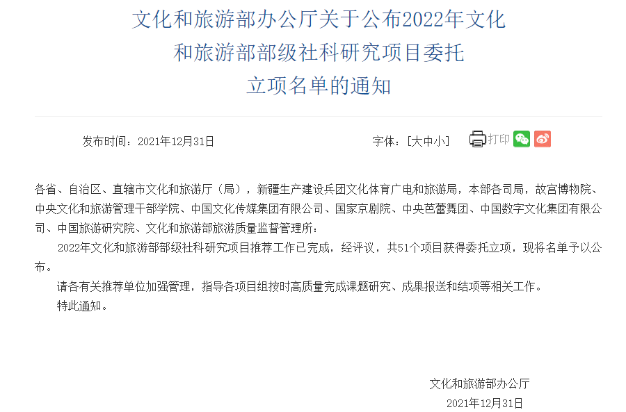 近日,文化和旅游部办公厅正式公布2022年文化和旅游部部级社科研究项目委托立项名单,我院石培华教授申报的课题《旅游健康风险分析及服务模式研究》获得文化和旅游部部级社科研究项目委托立项资助。