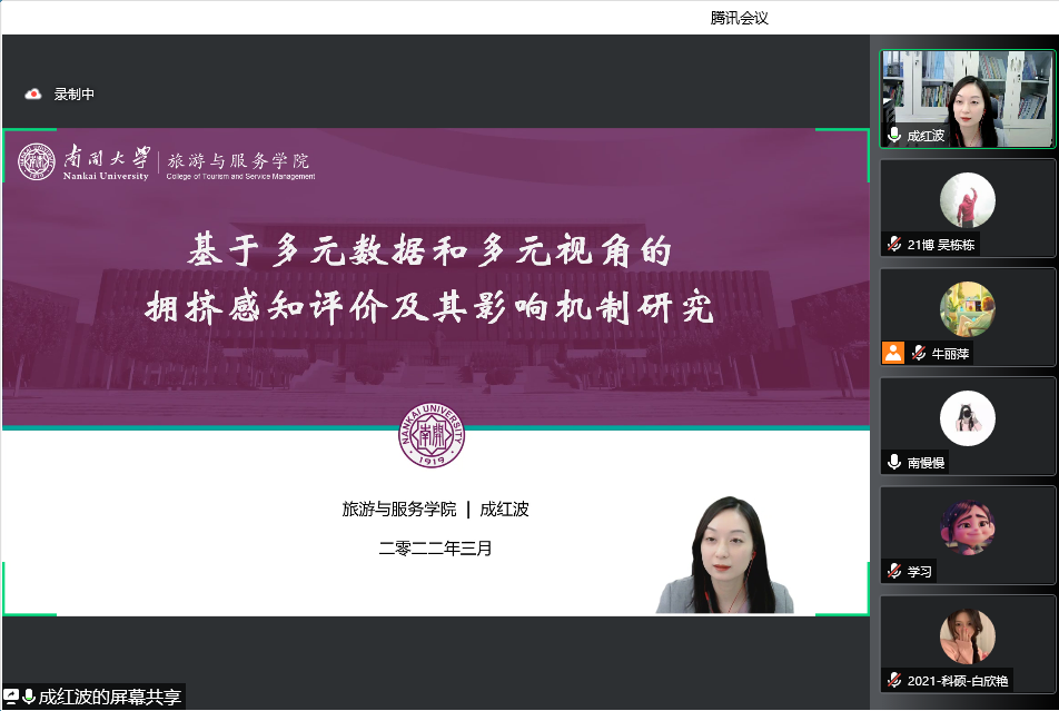 (通讯员:吴栋栋)3月4日中午,南开大学“旅游大讲堂——晋升教师论坛”在腾讯会议平台顺利开展。yl23455永利官网成红波博士、毕建武博士分别就其学术研究内容和学术贡献做了精彩的线上报告。我院院长、教授、青年教师、博士后、硕博研究生、校外专家等校内外研究人员共计110人参加了此次讲座,yl23455永利官网副院长李辉教授担任此次讲座的主持人。
