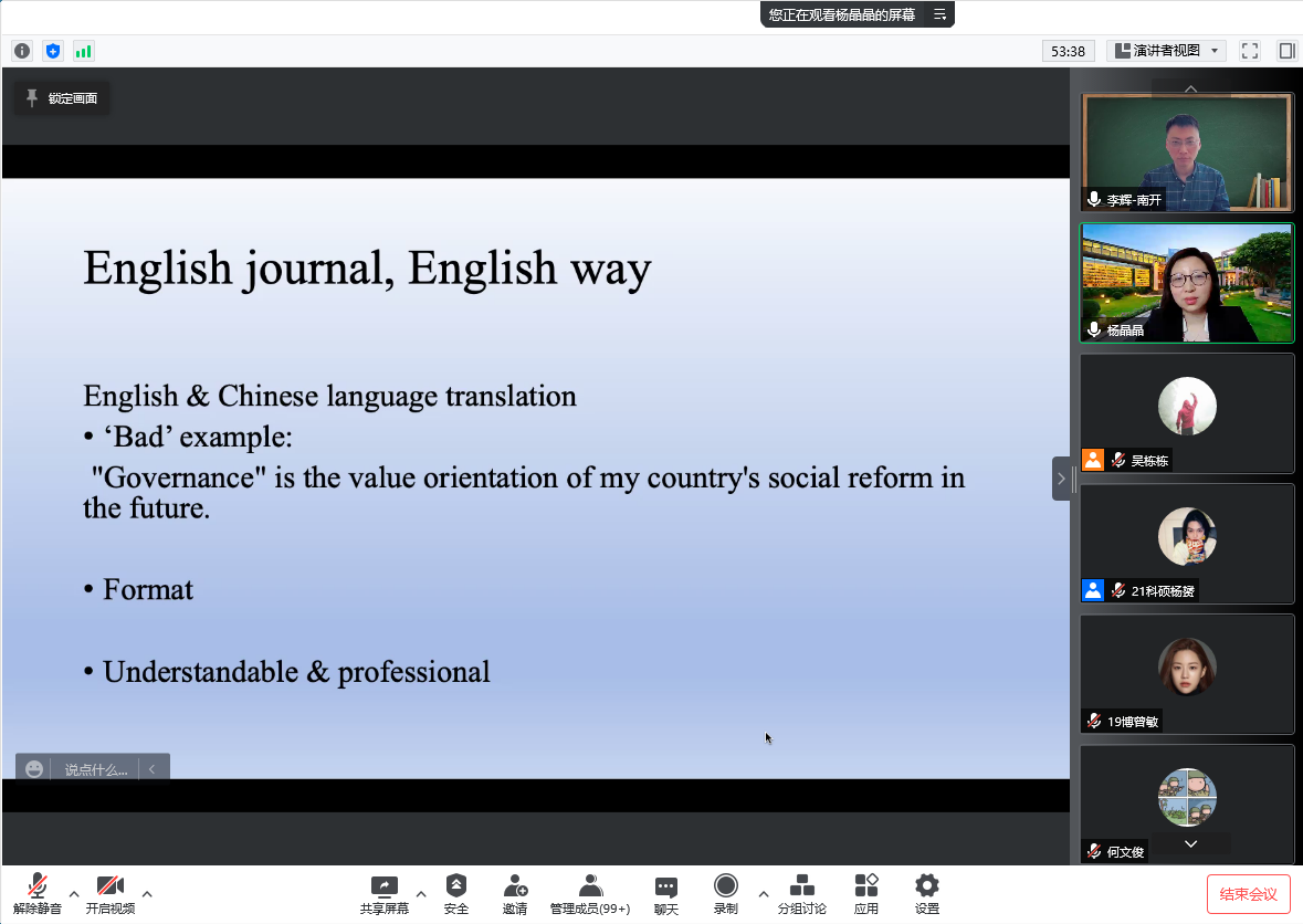 (通讯员:吴栋栋)4月10日下午,南开大学“旅游大讲堂——杰出教授论坛”在腾讯会议平台顺利开展。应我院邀请,旅游管理领域国际顶级期刊Tourism Management副主编(中国)杨晶晶老师为我院师生带来了“政产学研合作与旅游教育和研究”的精彩线上讲座。我院青年教师、博士后和硕博研究生等校内外成员共计310余人参加了此次讲座,yl23455永利官网副院长李辉教授担任此次讲座的主持人。