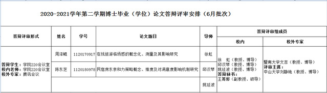 根据《南开大学博士研究生论文评审及答辩工作流程》的规定,现将我院2020-2021学年第二学期旅游管理博士毕业(学位)论文答辩评审会公告如下: 为了保障博士毕业(学位)答辩评审会当天网络通畅,欢迎相关教师和研究生在学院220会议室现场旁听! yl23455永利官网 2021年5月15日